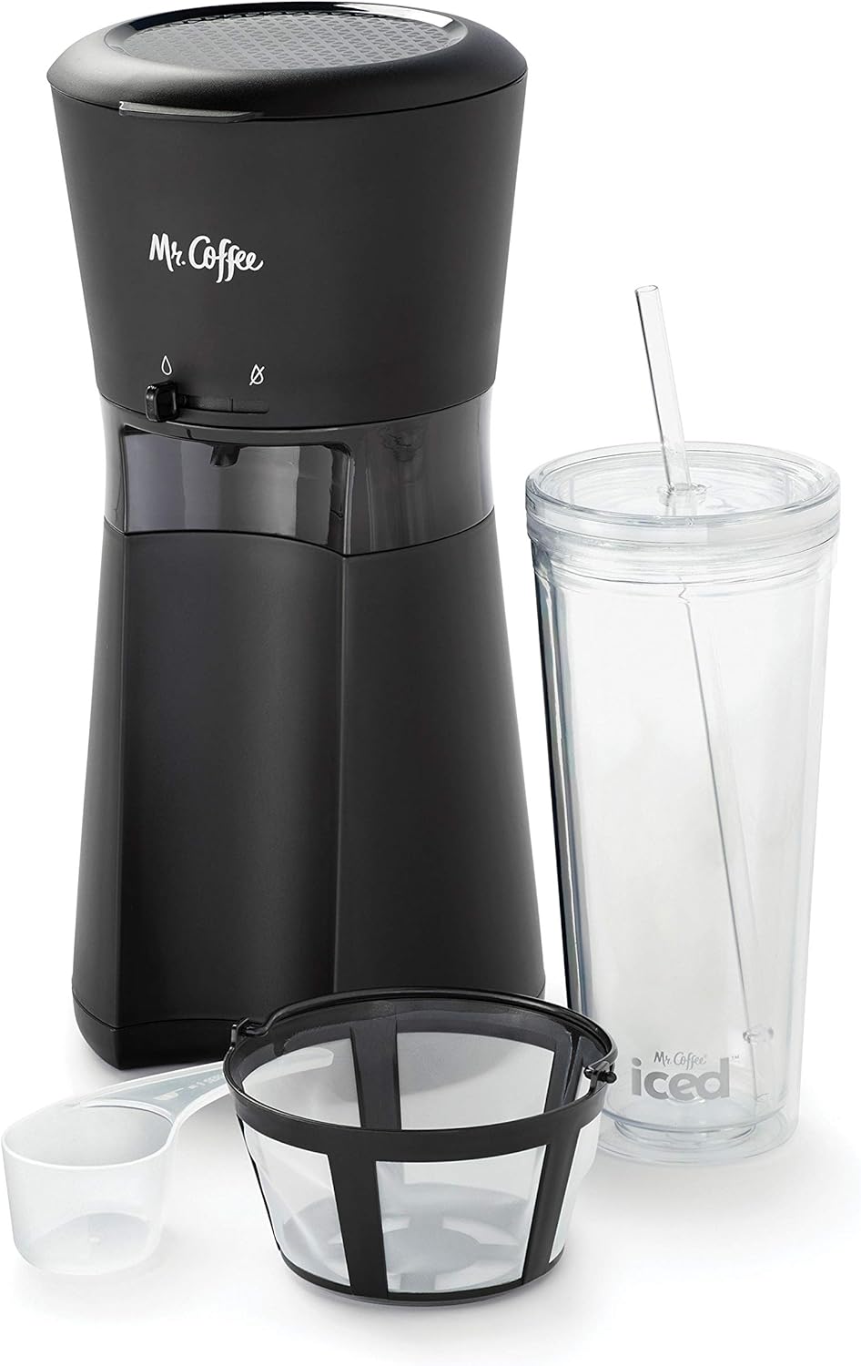 Coffee iced coffee maker also features a drip stop function that prevents any mess from dripping onto your counter once completed it comes with a measuring scoop and a 22 oz double-wall insulated BPA-free tumbler glass with a reusable straw a reusable coffee filter and it measures just 145 inches tall x 10 inches wide x 73 inches deep so it takes up very little counter. ICED COFFEE THATS NEVER WATERED DOWN. The mr iced coffee maker makes it simple to create refreshing ice coffee in minutes at home.