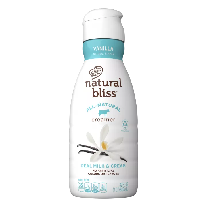 Vanilla Flavored All Natural Coffee Creamer 32 Oz Bottle Official Natural Bliss